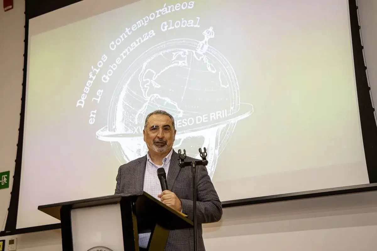 Uribe Escalante ofreció la conferencia La gobernanza global en la era de la incertidumbre. Desafíos y oportunidades para el futuro del orden internacional, este martes, en salas de Aprendizaje Permanente del edificio Estoa.