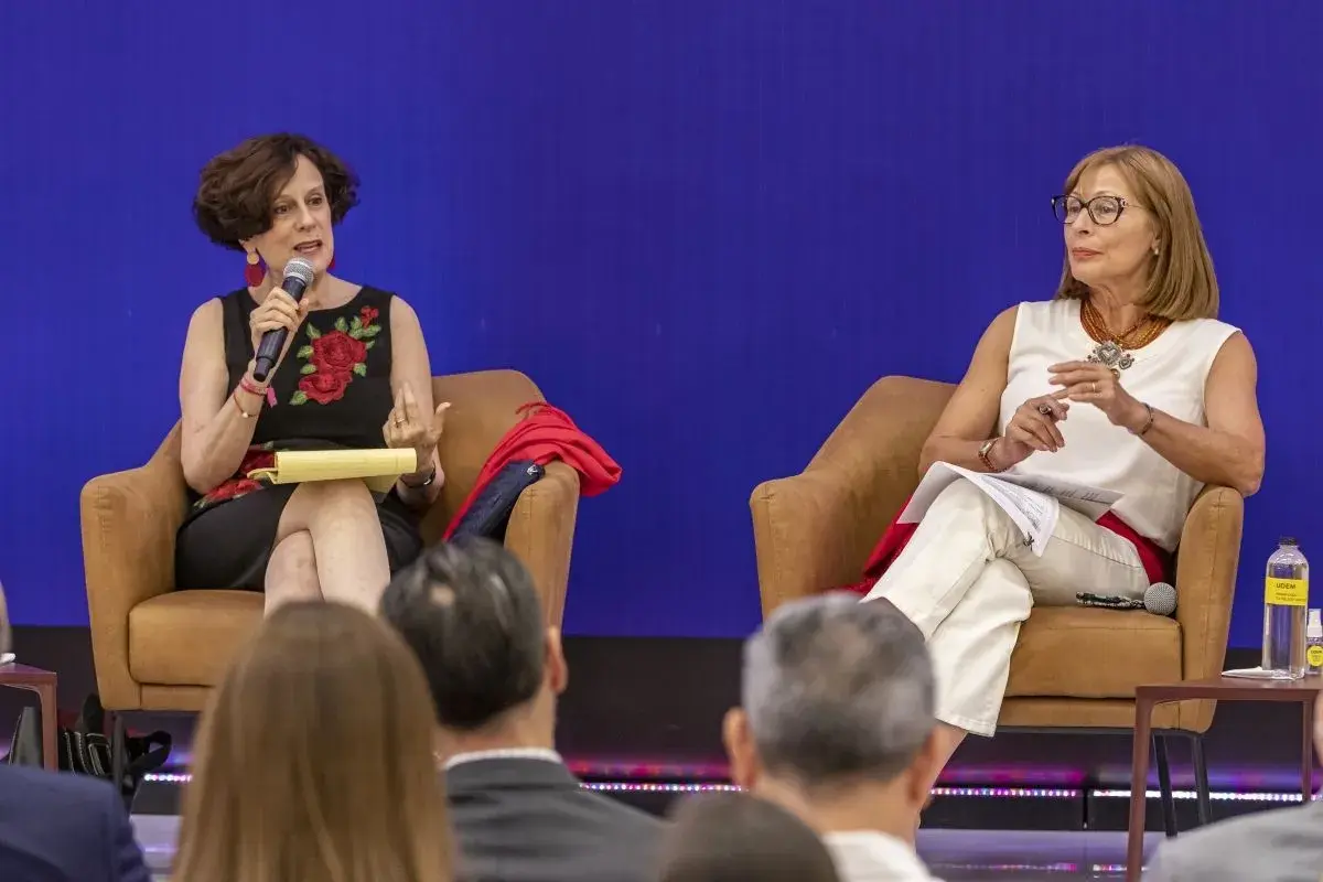 - Tatiana Clouthier, exsecretaria de Economía del Gobierno de México, y la politóloga Denise Dresser participaron en el panel Mujeres en política, como parte de la tercera edición de UDEM x TODAS 2023, en la Universidad de Monterrey