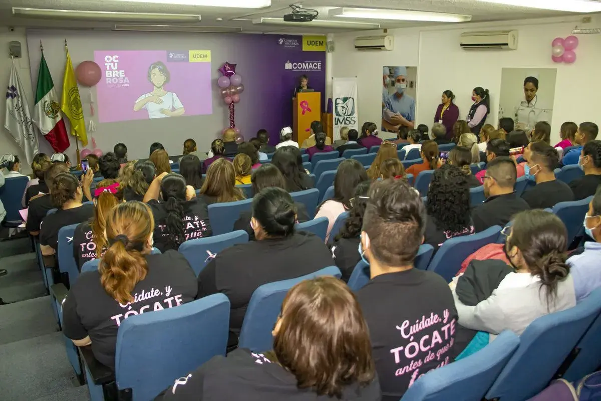 En el marco del Día Mundial contra el Cáncer de Mama, las actividades se desarrollaron en las instalaciones de la Escuela de Enfermería de la UDEM, encabezadas por Patricia Addarith Magaña Lozano, directora de la Escuela de Enfermería de la UDEM; como invitado de honor, Tonatihu Ortiz Castillo, delegado regional del IMSS en Nuevo León; Daniel López Tapia, director de la Escuela de Medicina de la UDEM; y Cecilia Sierra Rodríguez, coordinadora de los cursos Posbásicos de Medicina de Familia.