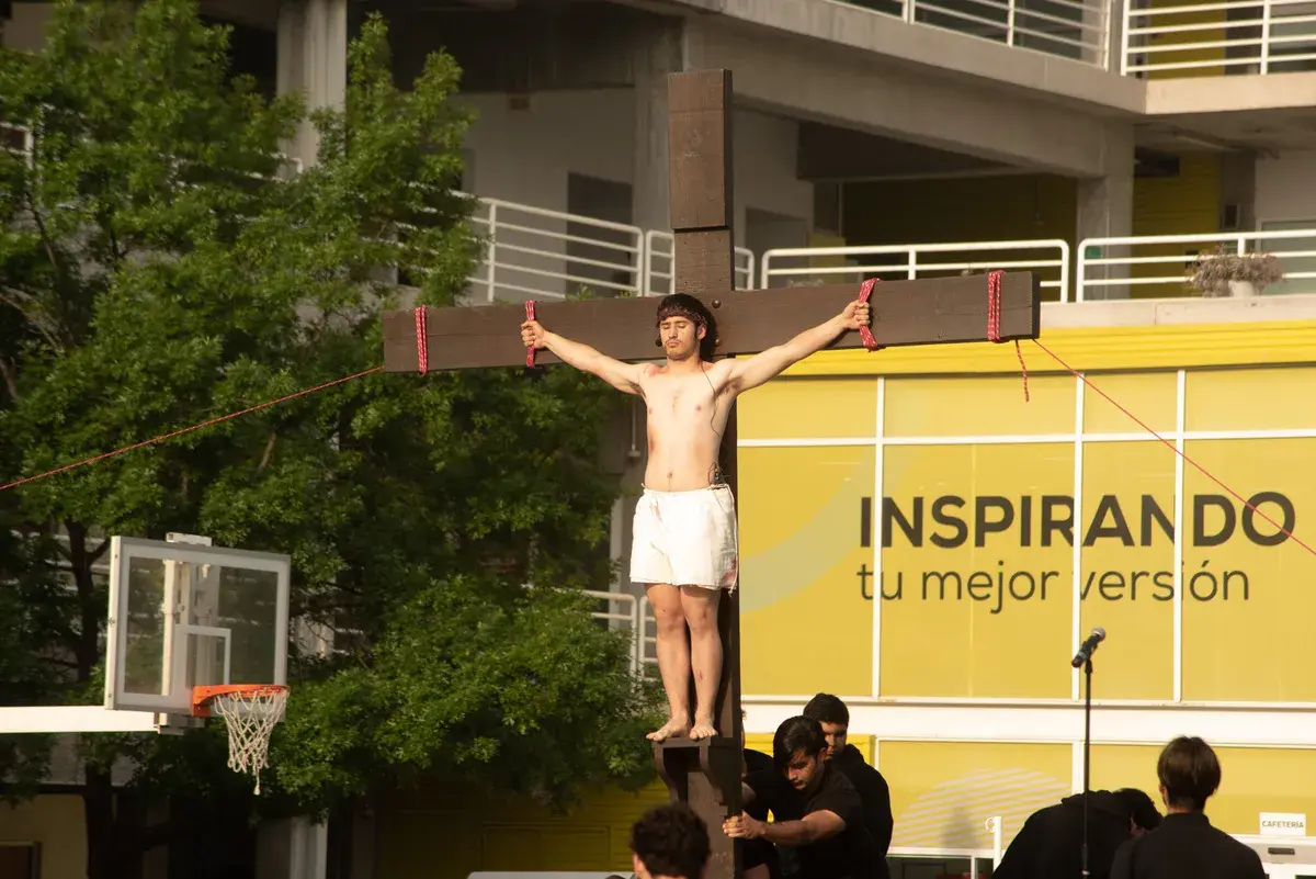 - Estudiantes y colaboradores de esta institución llevan a escena la Pasión de Jesucristo, en el viernes previo al inicio de la Semana Santa