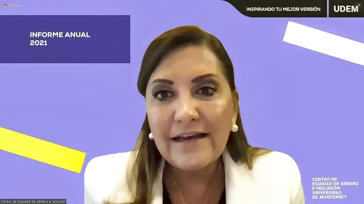 - Marcela Chavarría y Chavarría, directora del Centro de Equidad de Género e Inclusión (CEGI) de la Universidad de Monterrey, ofreció el Informe del primer año de gestión del organismo universitario.