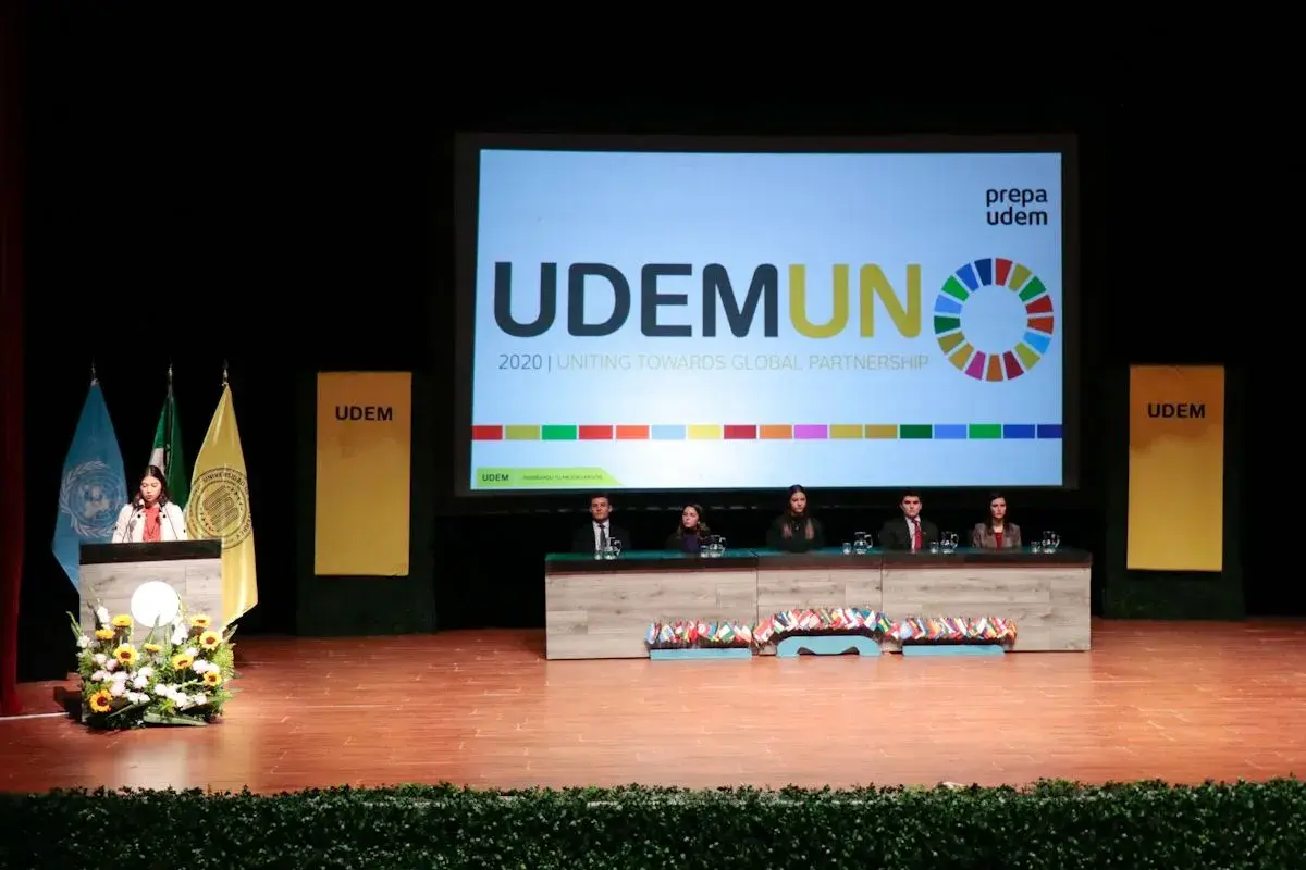 UDEMUN es un programa organizado por jóvenes y para jóvenes, que busca enseñar al alumnado sobre asuntos de índole mundial, ayudándolos a desarrollar habilidades de liderazgo, comunicación, debate, negociación y diplomacia.
