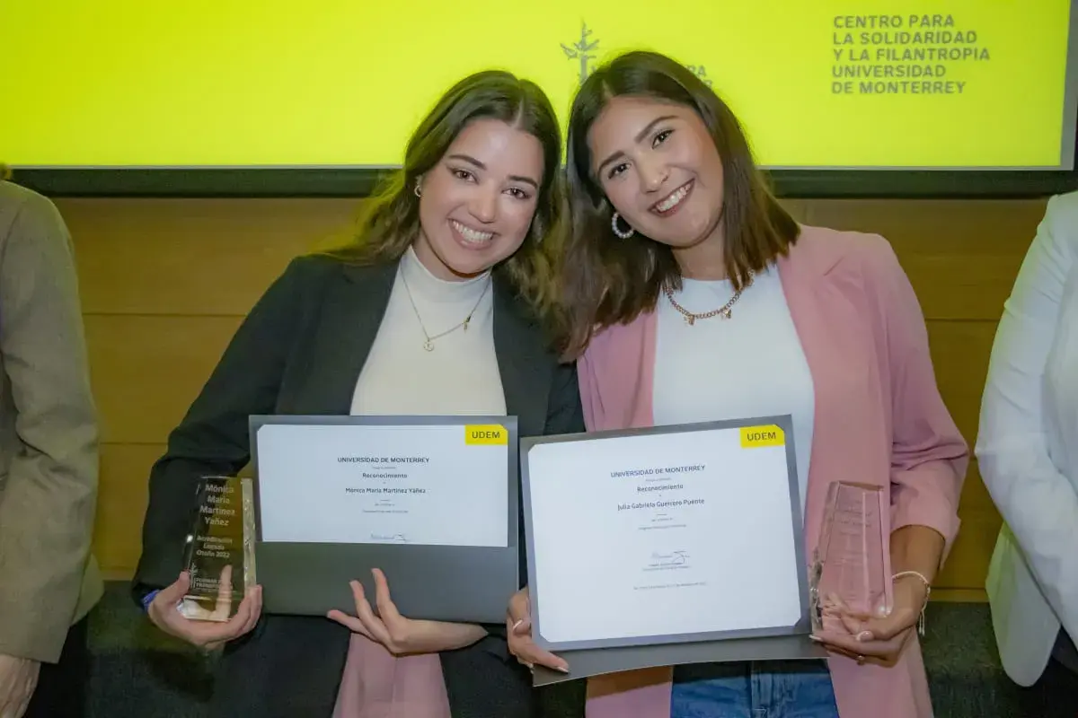 Y es que Julia, quien egresará de la Licenciatura en Ciencias de la Educación en el actual semestre de Otoño 2022, y Mónica, quien hará lo mismo de la Ingeniería en Innovación Sustentable y Energía, participaron en el programa Formar Para Transformar de la UDEM, el cual acompaña a las y los alumnos con vocación de servicio durante el transcurso de sus programas académicos, de manera que tengan una formación integral y desarrollen proyectos sociales con visión a largo plazo que transformen la realidad. Ellas acreditaron formalmente dicho programa el pasado 5 de diciembre, en una ceremonia realizada en el Claustro Universitario de esta casa de estudios.