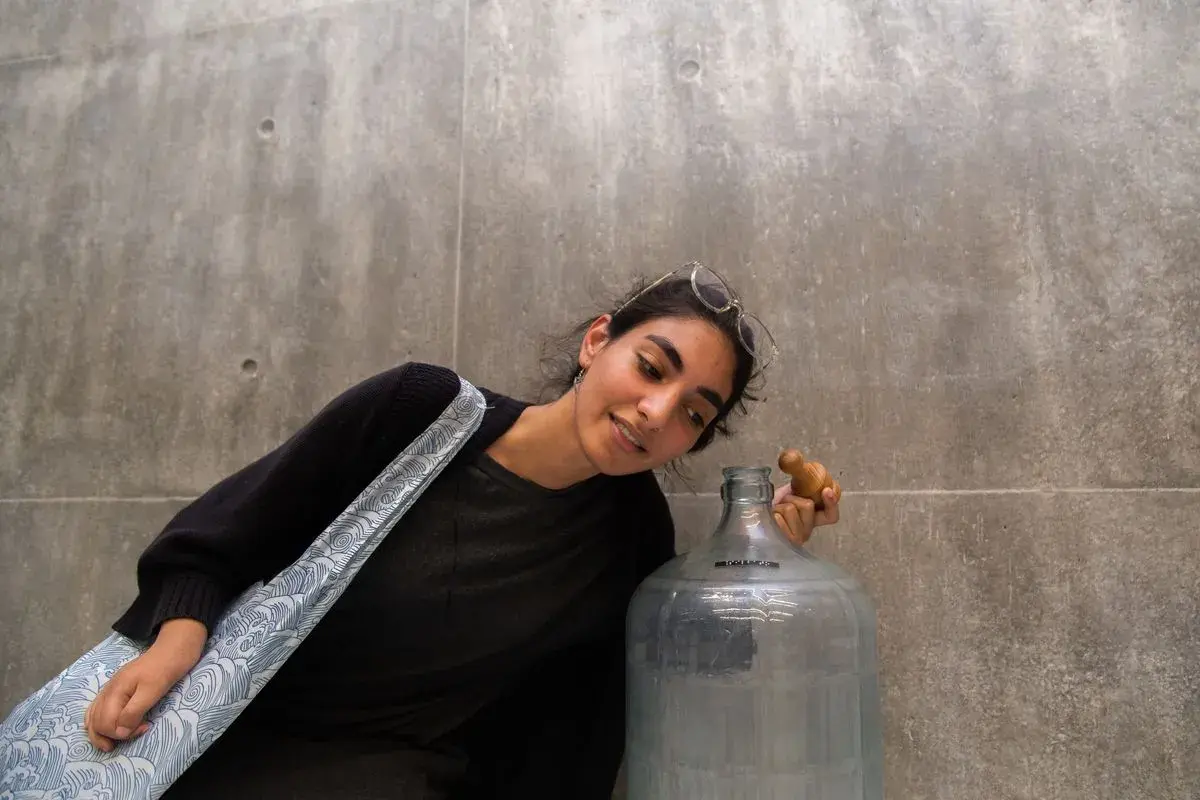 “Recuerdos del aire” es la muestra de Blume, la cual creó en colaboración con un taller de sonido realizado en la UDEM y que consta de 21 frascos identificados con Braille. Cuando se abren los contenedores, el usuario podrá escuchar cantos de aves, rugidos de un león y el repicar de campanillas, entre otros sonidos. Al aislar el sonido se recupera su valor, pues en el día a día las personas los dan por sentado.