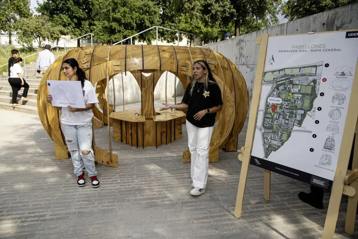 Estas obras, que llamamos pabellones, que a primera vista podrían parecer elementos de mobiliario urbano, son pequeños edificios que se relacionan con el entorno, con la naturaleza, pero que cada uno tiene un sistema constructivo que los alumnos crean”, explicó.