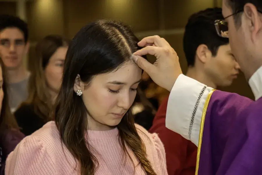 En una misa se bendice e impone la ceniza de palmas bendecidas el Domingo de Ramos del año anterior.
