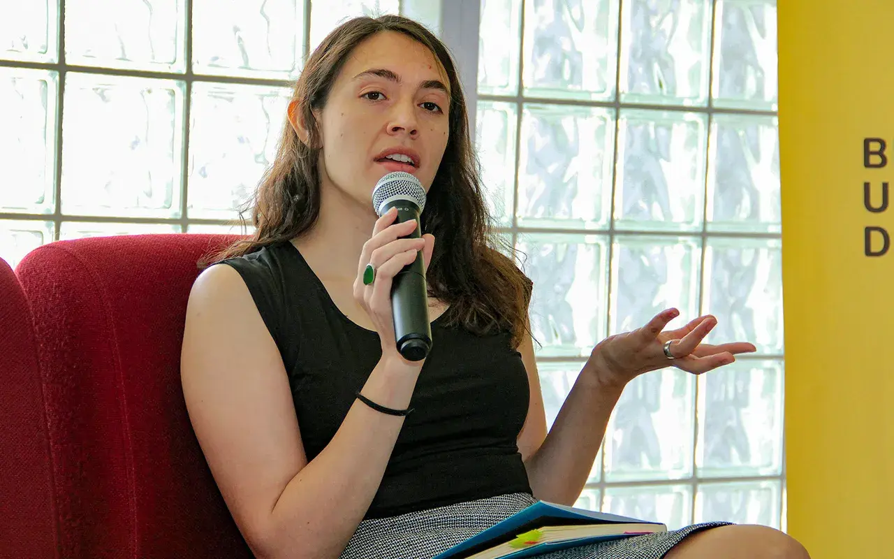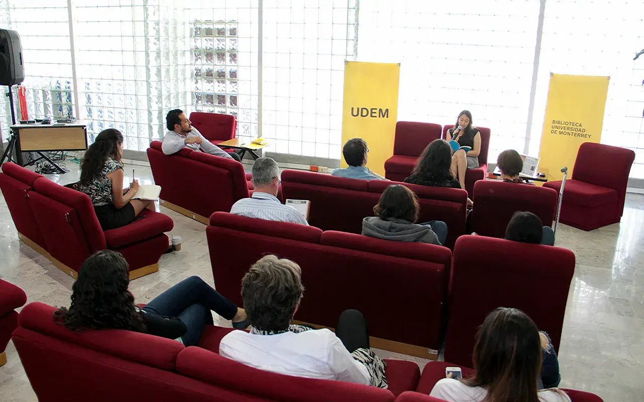En el tradicional ciclo de charlas de la UDEM, la poeta y traductora proveniente de Ciudad de México dio lectura a algunos de los textos de su libro “Alguien vivió aquí”, editado recientemente por Argonáutica, que cuenta con la traducción al inglés de Robin Myers.