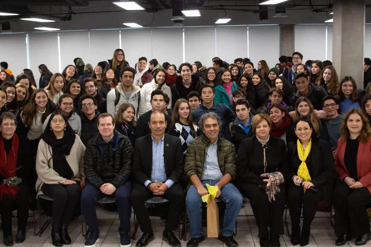 El alcalde de Medellín, Colombia, durante el período 2004-2007 ofreció la conferencia Aquí y ahora, el mundo que viene, a estudiantes de la Prepa UDEM Unidad San Pedro, esta mañana, en la Sala Polivalente del plantel, organizada por la Academia de Ciencias Naturales.