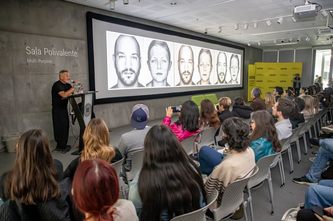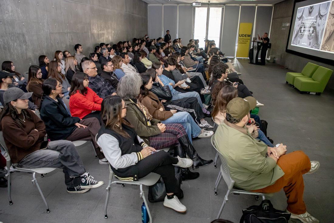 La conferencia se realizó la tarde de este lunes en la Sala Polivalente del Centro Roberto Garza Sada de Arte, Arquitectura y Diseño de la UDEM, ante estudiantes de diversas carreras de la Escuela de Arte y Diseño.