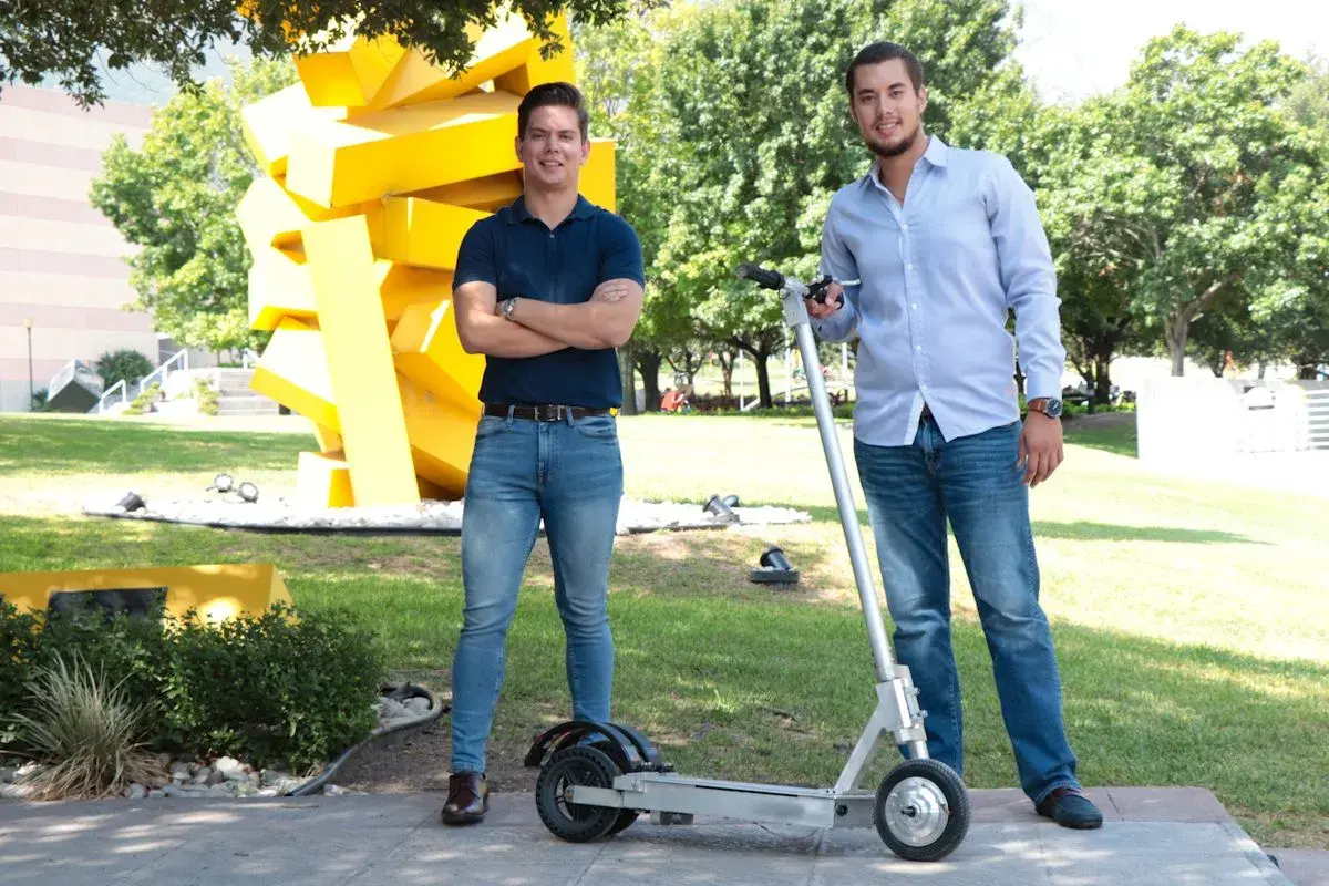 Fernando Hernández Suárez, ingeniero en Diseño Automotriz, y Felipe González Segarra, egresado de la ingeniería en Tecnología y Robótica presentaron el proyecto “Diseño y Fabricación de un scooter eléctrico” como su evaluación final, en el que revolucionan el uso de monopatín como medio de transporte en una metrópoli.
