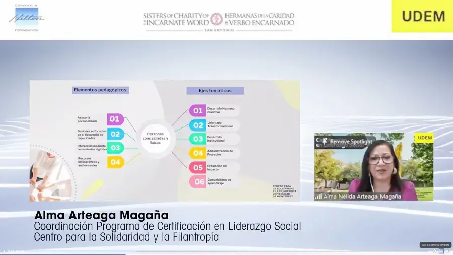 La segunda generación del curso en línea Certificación en Liderazgo Social celebró su graduación, organizada por el Centro para la Solidaridad y Filantropía de la Universidad de Monterrey, en alianza con la Congregación de las Hermanas del Verbo Encarnado y Fundación Hilton