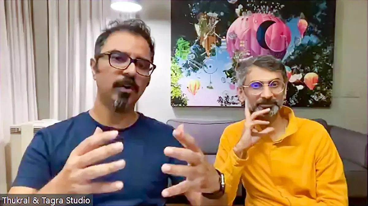 La conferencia inaugural estuvo a cargo de los artistas indios Jiten Thukral y Sumir Tagra, de Thukral & Tagra Studio, en la que platicaron sobre la evolución de su trabajo y cómo es que lo canalizaron para compartir ideas de impacto social, económico y político, al mismo tiempo que hacen partícipes al espectador.