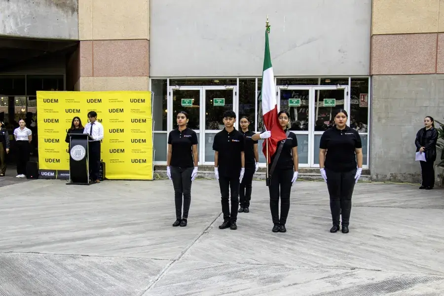 - Estudiantes, docentes y colaboradores se reunieron en la Plaza Cívica de la Universidad de Monterrey para entonar el himno nacional y conmemorar el lábaro patrio.